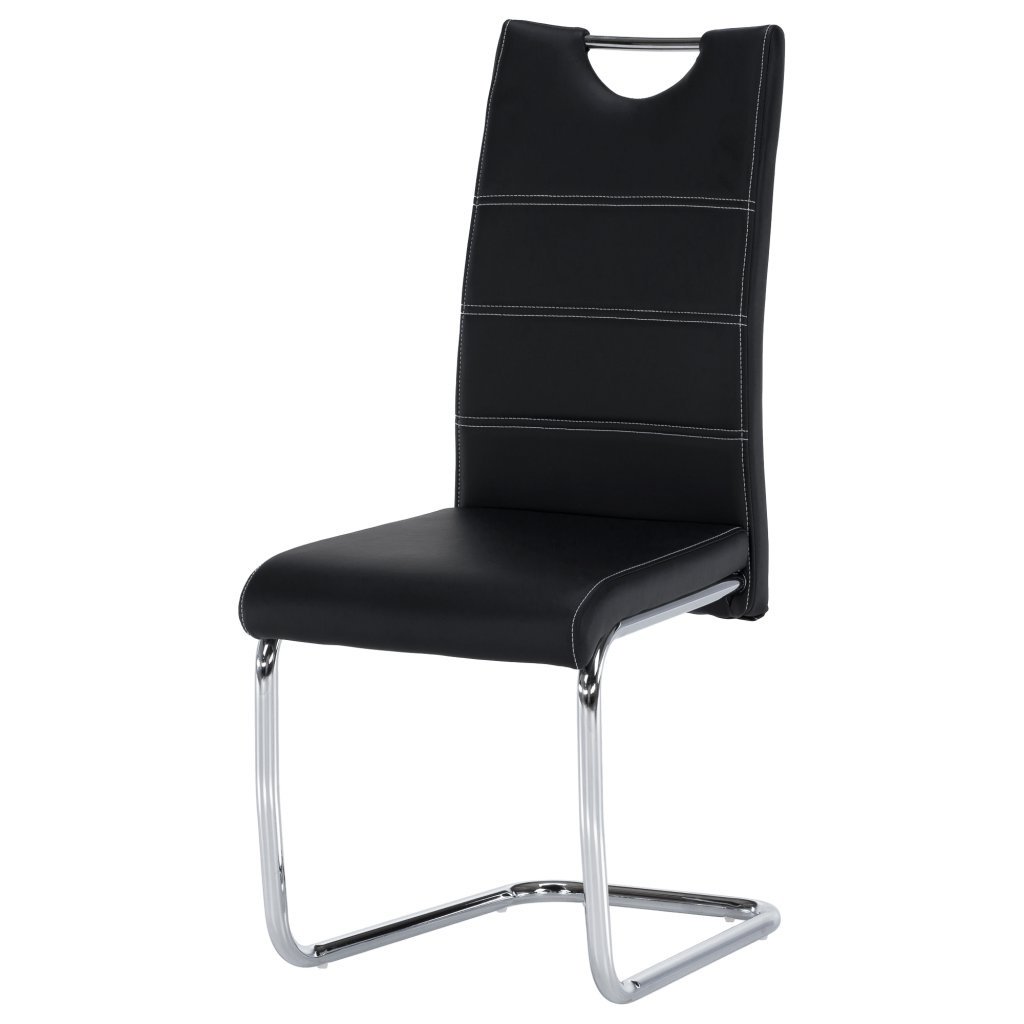 jídelní židle, materiál: ekokůže PU + chrom, barevné provedení: černá. Rozměry ŠxHxV: 43x44x96 cm, výška sedu: 47 cm. Dodávané v demontu. Nosnost: 110 kg