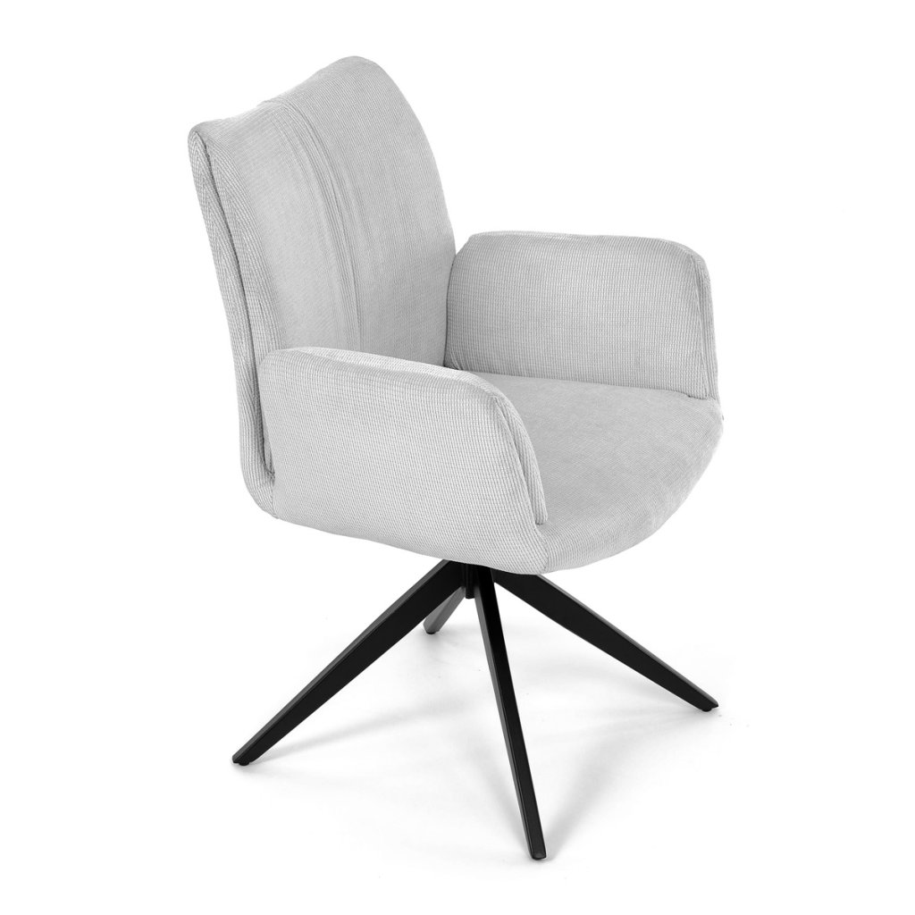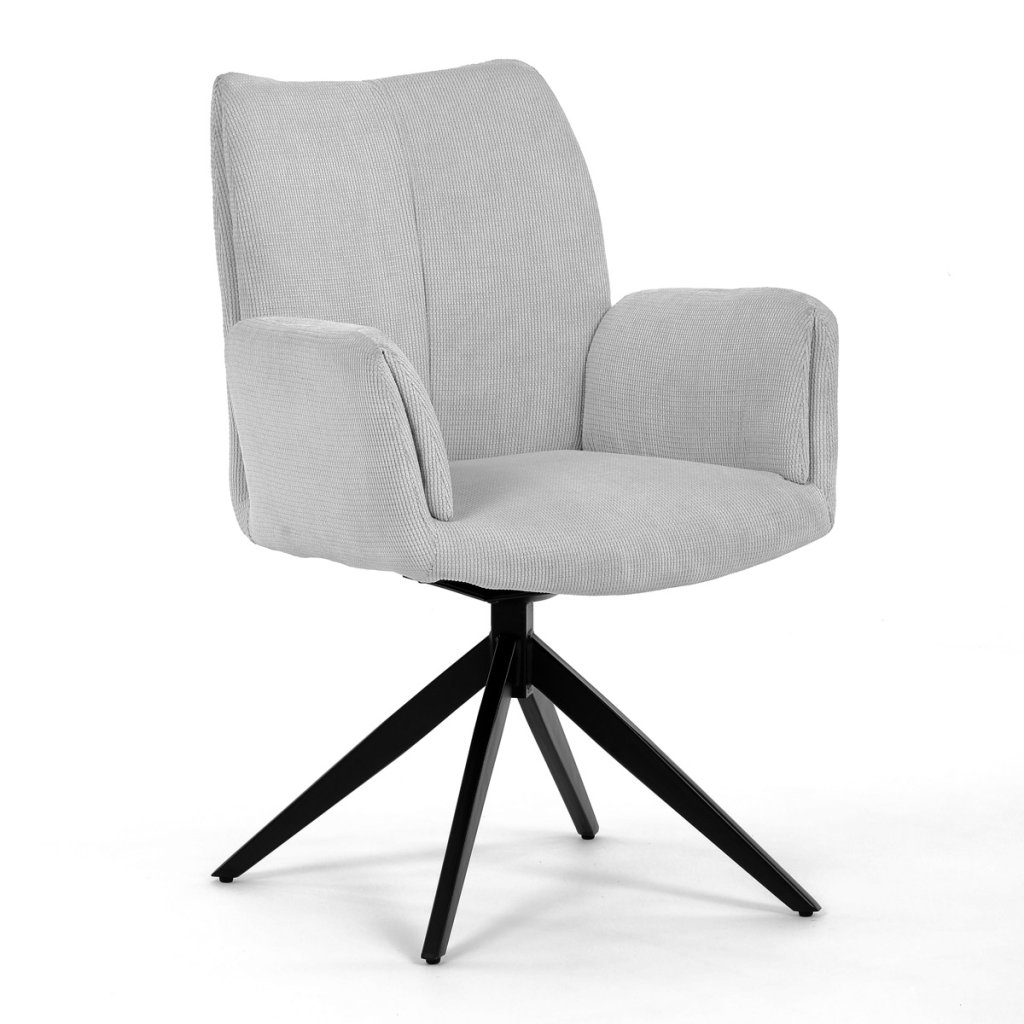 Židle jídelní, bílá látka, otočný mechanismus 180°, černý kov AJZ103B. Jídelní židle je dokonalou kombinací pohodlí a stylu a je navrženo tak, aby pozvedlo úroveň každé kanceláře nebo domácnosti. Tato židle, vyro...
