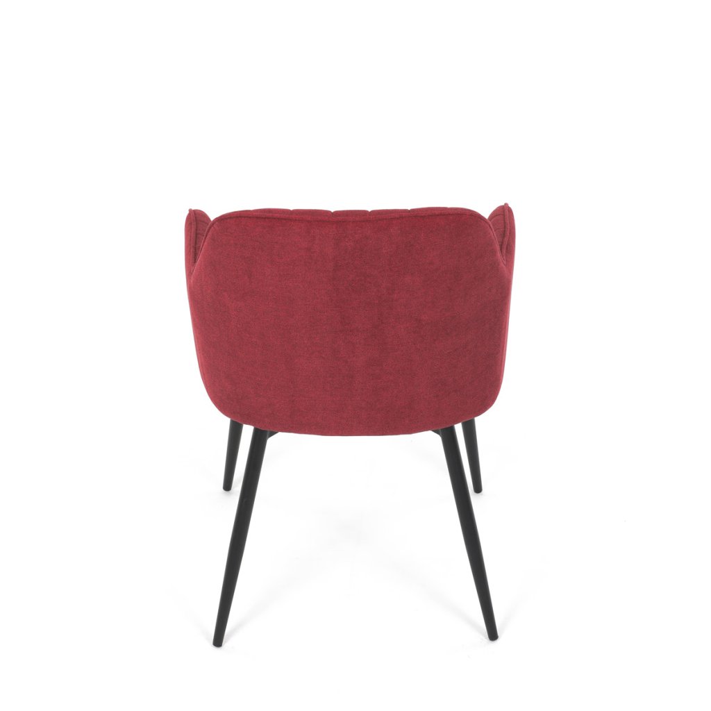Stylová jídelní židle od značky zaujme moderním průmyslovým designem, který skvěle zapadne do každého interiéru. Je čalouněná hladkou červenou látkou, která je nejen trvanlivá, ale také příjemná na dotek. Komfort při sezení zajistí pohodlné područky a měkká pěnová výplň. Pevná kovová konstrukce černé barvy s s nohami kruhového profilu dodává stabilitu a elegantní vzhled. Tato jídelní židle je ideální volbou pro moderní jídelny, kde se snoubí pohodlí s estetikou a dlouhou životností.