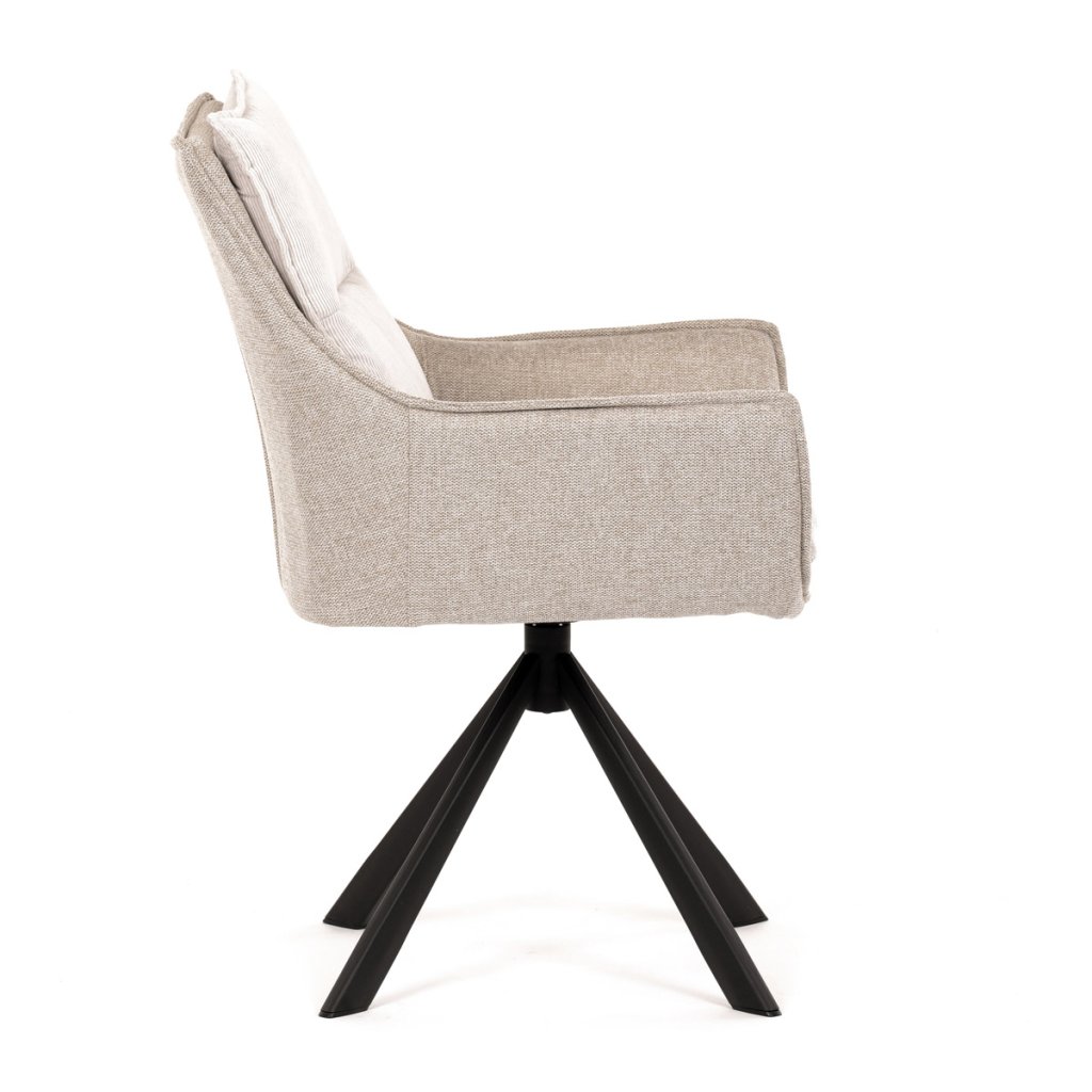 Manšestrové křeslo v béžové barvě kombinuje exkluzivní vzhled a praktičnost. Vysoce kvalitní látkové potahy ve spojení s robustními kovovými nohami v černé barvě zajišťují dlouhou životnost a odolnost. Stylové provedení značky je ideální do moderního interiéru a nabízí mimořádný komfort. Křeslo je otočné o 360 stupňů, což přináší neomezenou flexibilitu použití. Tento vkusný nábytek se hodí jak do domácností, tak do komerčních prostor, které usilují o luxusní estetiku.