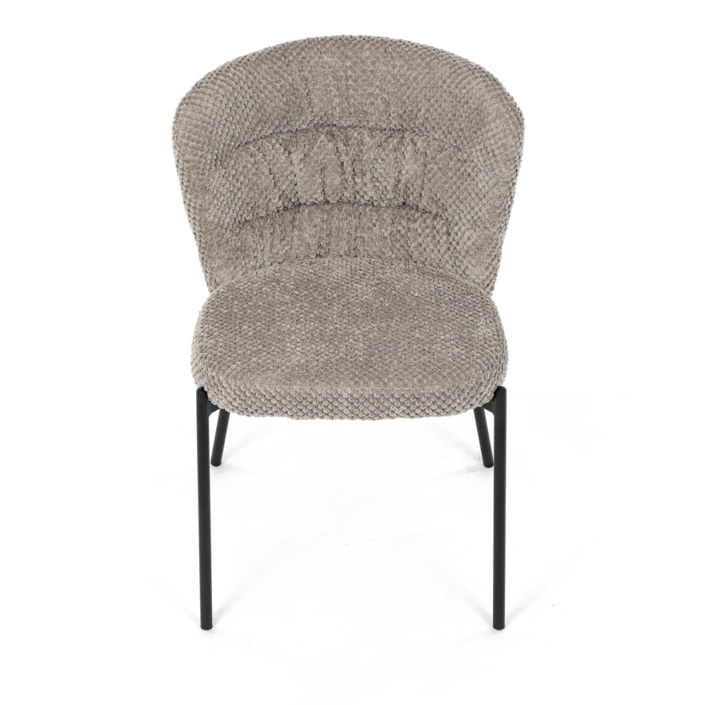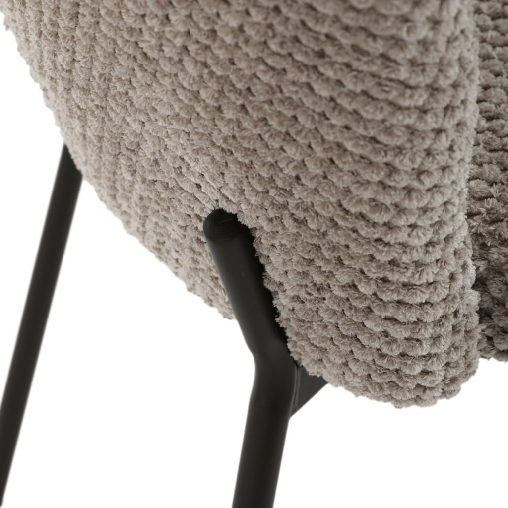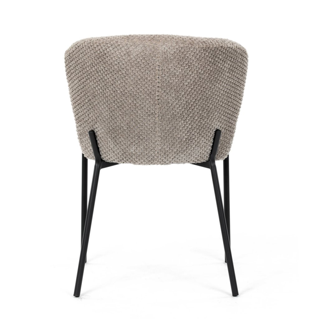 Židle jídelní, lanýžová látka, černé kovové nohy. AJZ191L. Jídelní židle značky spojuje eleganci s praktickými vlastnostmi. Čalounění z látky Bouclé je nejen moderní, ale také voděodolné a vhodné pro...