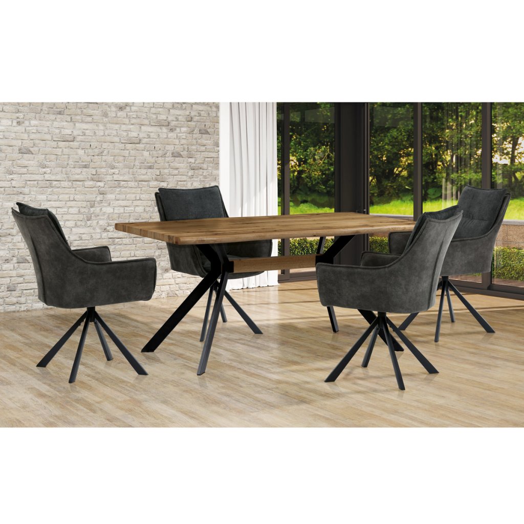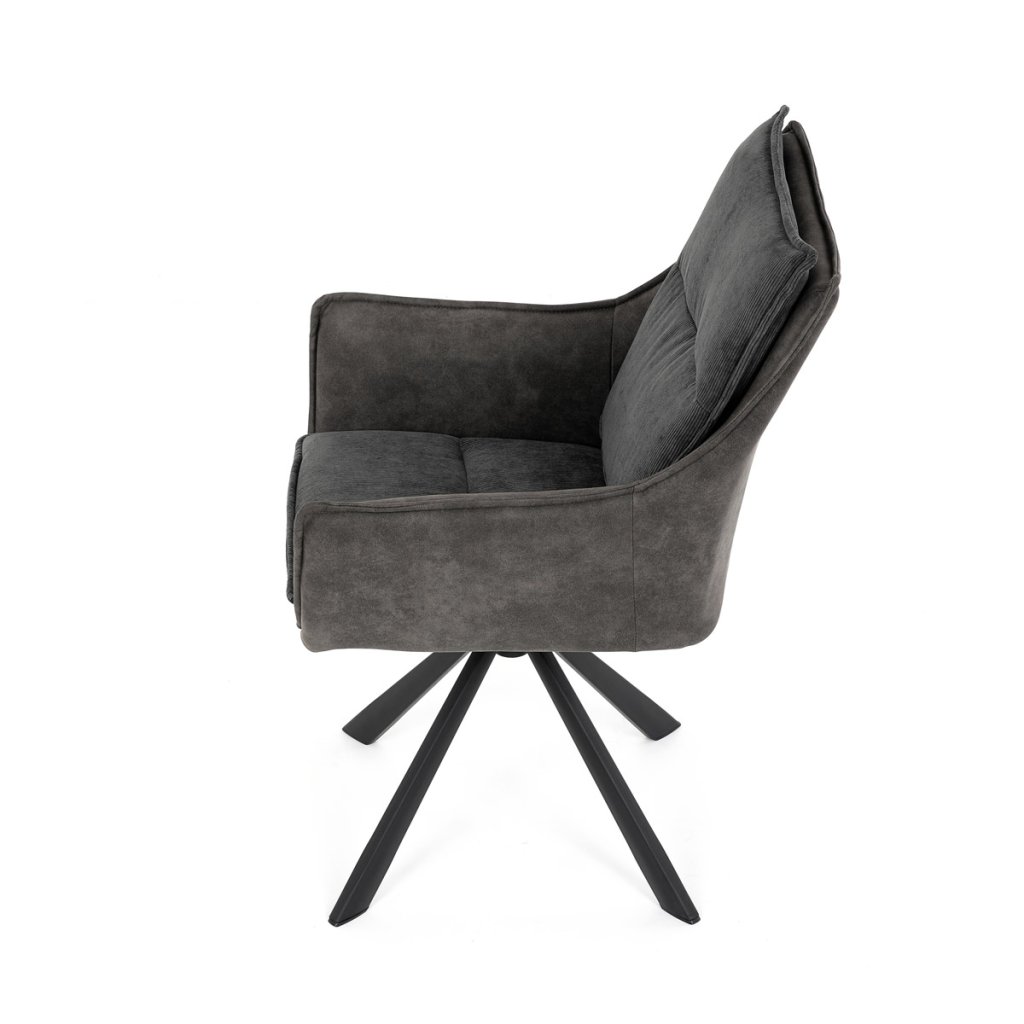 Elegantná stolička od značky zaujme každého na prvý pohľad. Vďaka svojej šedej menčestrovej látke ponúka nielen luxusný vzhľad, ale aj mimoriadne príjemný na dotyk. Čierne kovové nohy dodávajú tejto modernej stoličke stabilitu a štýl. Výnimočnosť spočíva v jej otočnej funkcii, ktorá umožňuje flexibilitu a pohodlie pri práci či odpočinku. Ideálna voľba pre každý interiér hľadajúci sofistikovaný dizajn a kvalitu.
