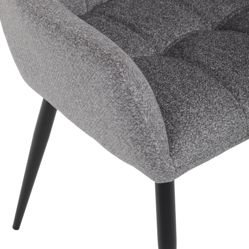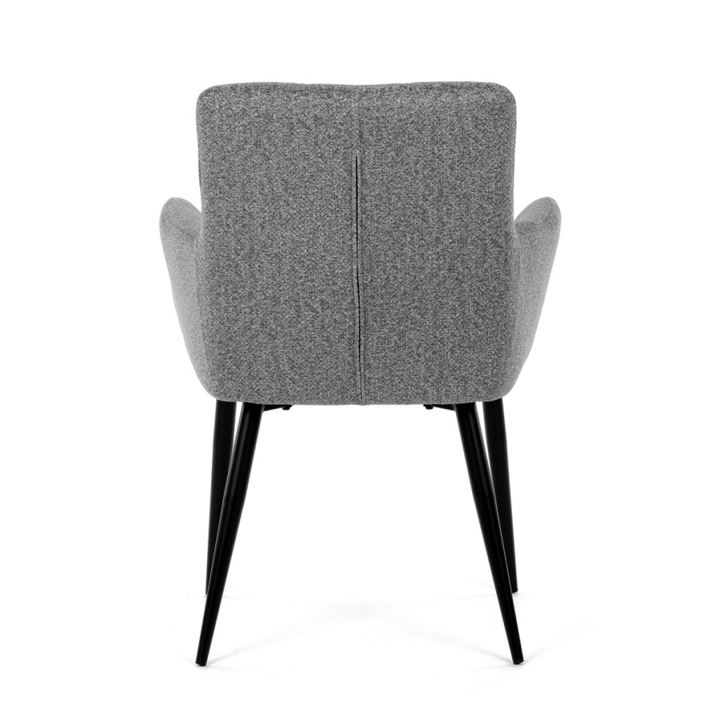 Elegantní šedá jídelní židle od značky skvěle doplní moderní i klasické interiéry. Tato stylová židle nabízí vysoký komfort díky čalounění z kvalitní látky a mekkému sedáku z PU pěny. Černé kovové nohy zajišťují stabilitu a dodávají židli jemný industriální nádech. Komfortní područky a ergonomické provedení oceníte při každém posezení. Židle se hodí nejen do domácí jídelny, ale i do restauračních prostor, kde vytvoří útulnou atmosféru.